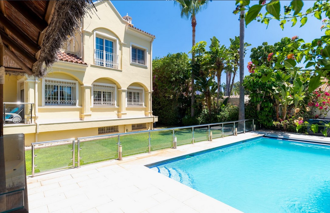 Steps from the Ocean, imposing 7 bedroom villa with private gardens and pool. Spacious living areas, enourmous kitchen. Games room. Sea views.